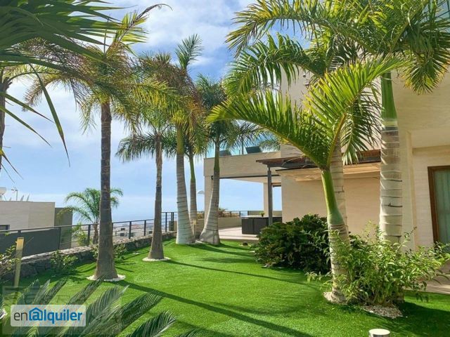 Espectacular villa en alquiler con piscina privada y vistas panorámicas al mar y a las montañas. La villa esta construida sobre una parcela con posición privilegiada disfrutando a la vez de discreción y vistas panorámicas de 360º alrededor de la villa. Dividida sobre 3 alturas tiene 3 habitaciones y 2 baños con vistas y terrazas en planta alta, zona de día con un salón luminoso, gran cocina independiente y acceso al exclusivo cenador exterior con vistas al mar. En planta baja esta situados el gimnasio y un gran apartamento completo con salón y cocina americana y un precioso dormitorio doble con armarios empotrados. Garaje privado para dos coches. El jardín y las zonas exteriores, tan importante en Tenerife Sur son amplias y soleadas pero disfrutan de la máxima discreción. La piscina privada con cascada se puede disfrutar a temperatura perfecta los 365 días del año. Hay aire acondicionado en toda la villa, terrazas y amplios espacios abiertos. El jardín esta plantado por completo con palmeras reales y plantas subtropicales añadiendo así a la maravillosa sensación de vivir de vacaciones todos los días del año. #ref:TM1304-V-CAL - TM1304-V-CAL - Terra Magna Inmuebles S.L.