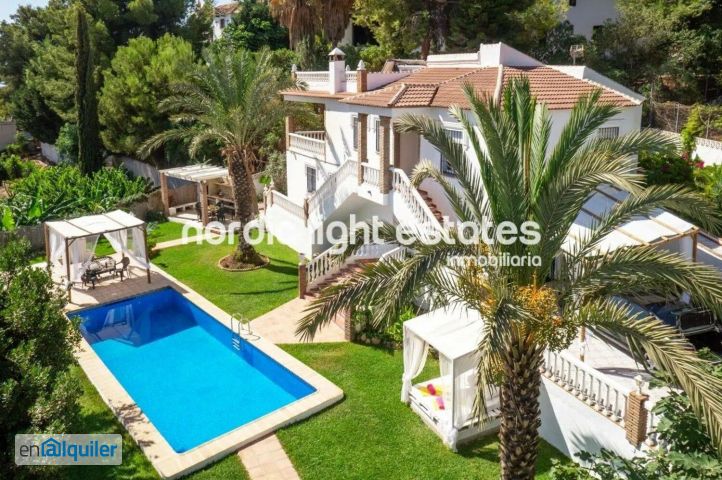 ¡No para todo el año! Solo alquiler de invierno 2026 Descubre la máxima expresión de la vida campestre en esta elegante villa ubicada en el apacible entorno de Las Colinas, estratégicamente situada entre Nerja y Frigiliana en la famosa y exclusiva zona CORTIJO SAN RAFAEL.  Esta exclusiva propiedad está disponible para alquiler de invierno desde el 1 de febrero de 2026 hasta el 15 de abril de 2026 (2,5 meses). Con dos apartamentos independientes, uno en la planta baja y otro en el primer piso, esta espaciosa villa es un refugio ideal para dos familias o un grupo grande. Con un total de 4 dormitorios, 2 salones-comedores con acogedoras chimeneas, 2 cocinas y 3 baños (uno con bañera y los otros dos con amplias duchas), esta residencia irradia comodidad y sofisticación. Cada habitación cuenta con aire acondicionado, garantizando un ambiente agradable en todo momento, y la inclusión de WIFI en el alquiler añade un toque moderno a tu estancia. El interior está amueblado con gusto y decoración moderna, creando una atmósfera de lujo discreto. Al salir, la villa impresiona con su exterior imponente. Una piscina de 11x4 metros invita a refrescantes chapuzones, mientras que el estacionamiento al aire libre garantiza comodidad. Una zona de barbacoa es perfecta para cenas al aire libre, rodeada de un jardín bellamente ajardinado y varias terrazas, cada una ofreciendo una perspectiva única de los impresionantes alrededores. Relájate en encantadoras áreas de descanso o disfruta de una amistosa competencia con una mesa de ping pong en el garaje. Aprovecha la oportunidad de crear recuerdos inolvidables: ¡reserva ahora y experimenta el atractivo de esta excepcional villa! Información detallada: Pago mensual de 2.000? / Depósito de seguridad de un mes 2.000? / Se aceptan mascotas, se requiere depósito de seguridad.  Sólo electricidad a parte. Mantenimiento de la piscina y del jardín, agua e internet incluidos en el precio.   Póngase en contacto con Nordic Light Estates para concertar una visita o para obtener más información. Esta propiedad tiene la referencia: NL10202   Frigiliana es un pueblo de la provincia de Málaga. Es considerado uno de los pueblos más bellos de España. Característico por el color blanco que inunda sus calles, por el suelo empedrado tan bien conservado que posee, por su decoración floral y por las coloridas puertas que alegran las viviendas y locales del lugar. Además, la Sierra de Almijara es apreciable con detalle desde cualquier punto del pueblo. Las vistas son impresionantes desde cualquiera de los numerosos miradores que posee Frigiliana. Frigiliana es muy conocido por un evento verdaderamente especial: El Festival de Tres Culturas. Sin olvidar que la miel de caña producida únicamente en Frigiliana es muy conocida en Europa. En definitiva, Frigiliana sigue conservando su esencia rústica, convirtiéndose en un lugar ideal para pasar toda la vida. También su localización es idónea, ya que, se encuentra próximo a la localidad de Nerja. Por tanto, todos los servicios esenciales se encuentran a su alcance.    .