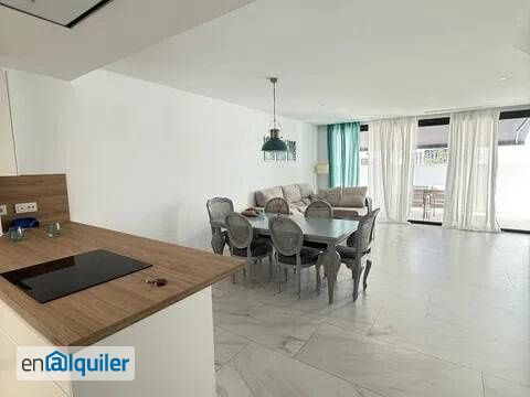 Se alquila casa adosada en la urbanización La Maerin Village En la primera planta: Cocina totalmente equipada y amueblada, salón - comedor con acceso a la terraza, un aseo En la segunda planta: Tres dormitorios, dos cuartos de baños Plaza de garaje Piscina comunitaria.