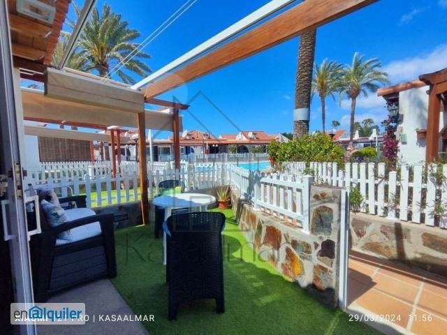 Campo internacional, la zona mas tranquila de Maspalomas, cerca de las playas, del golf, de Playa del Inglés, ven a descubrir este bungalow ubicado en un complejo pequeño con piscina y fuera de explotación. Se compone de una terraza intima , una cocina de exterior para disfrutar todo el año del clima fantástico del sur de Gran Canaria. El interior ofrece un gran dormitorio, el pasillo da a un salón cocina de buen tamaño que también abre a una terraza muy agradable con vistas al complejo. Los puntos extra de esta propiedad es que todo está muy bien cuidado, y cuenta con todas las comunidades. Si estas buscando una casa muy agradable con exteriores, y muy bien ubicada, no dudes en contactarnos para hacer una visita. (Nota: los datos expuestos pueden estar sujetos a errores o omisiones No dejes pasar esta oportunidad y contáctanos para obtener más información! Aviso Legal las informaciones del inmueble publicadas deben ser consideradas como orientativas, está sujeta a posibles errores y cambios involuntarios pudiendo existir inexactitud en las fotos y en las medidas. **La Ley 12/2023, de 24 de mayo, por el derecho a la vivienda, aprobada en el Congreso el 27 de abril de 2023, y en el Senado el 18 de mayo que está en vigor desde el día siguiente de su inclusión en el BOE, el 26 de mayo de 2023, contempla en el Apartado 1 del Artículo 20 que en caso de contratos de arrendamiento de vivienda 'los gastos de gestión inmobiliaria y los de formalización del contrato serán a cargo del arrendador' Esta normativa NO SE APLICA en los casos de contratos de arrendamiento de uso distinto del de vivienda como de locales, etc. y, en particular, no se aplica para los contratos de arrendamiento por temporada. En estos casos el arrendatario paga un mes de los honorarios de la agencia #ref:BUN_227