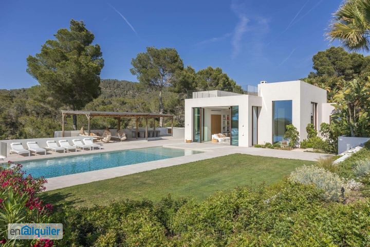 Espectacular villa con 7 habitaciones en suite, de reciente construcción en Cala Tarida. Fusiona conceptos de diseño moderno con materiales naturales para crear un espacio de vida abierto a la piscina, y las vistas la mar, integrando la naturaleza y permitiendo disfrutar de los espectaculares atardeceres de la isla. Ubicada en la costa oeste de Ibiza a escasos minutos de las playas de Cala Tarida y Cala Molí. Las impresionantes áreas internas de la propiedad, que abarcan aproximadamente 410 m, están diseñadas para aprovechar al máximo la vista sin obstrucciones del mar Mediterráneo. La orientación al oeste permite disfrutar de los increíbles atardeceres de Ibiza cada noche desde una posición envidiable. La sala de estar abierta a la terraza, y de gran tamaño, realza la sensación de amplitud y permite que el paisaje domine la vista, extendiéndose hacia la piscina infinita. También hay una acogedora área de TV con una pantalla de 75 pulgadas, un juego de ajedrez vintage. La cocina con isla flotante con todos los electrodomésticos de alta gama, una bodega/frigorífico integrado. El sistema de sonido Crown con amplificadores y altavoces distribuidos por toda la casa garantiza una experiencia auditiva superior. En la casa principal, el dormitorio principal se extiende en dos niveles con una terraza privada. Además, la casa principal cuenta con dos dormitorios en suite adicionales, y otros tres dormitorios exteriores en la planta baja. También hay un anexo separado con una kitchenette independiente en la entrada de la propiedad. Los 7 siete dormitorios de la propiedad son en suite, tienen una terraza privada, sistema de control climático individual con aire acondicionado, sistemas de sonido Sonos y puertos de carga USB para mayor comodidad. La villa está conectada a la fibra óptica de alta velocidad, ofreciendo velocidades de hasta 800 Mbps. Con 7500 m (2 acres) de terreno, y un jardín perfectamente diseñado, la propiedad está envuelta en naturaleza forestal, arbustos florales y palmeras, ofreciendo una excelente privacidad. La piscina infinita de 15m x 5m es la característica principal y está acompañada por un área de entretenimiento al aire libre que incluye una mesa de comedor para 14 personas, barbacoa, cocina exterior, sillas colgantes, sofás chill-out y un sistema de altavoces. La piscina utiliza un nuevo sistema de agua salada sin químicos, permitiendo nadar todo el día, una excelente característica para los niños. También hay una zona de estar en la planta superior con una hoguera que ofrece vistas espectaculares de la villa, otro espacio excelente para entretenimiento. Los famosos restaurantes SEspartar, el Cotton Beach Club y El Silencio están cerca. CONDICIONES ECONÓMICAS DEL ALQUILER: - Alquiler de temporada no anual (consultar precios de temporada de verano) - Contrato de temporada máximo 11 meses - Todos los pagos deben hacerse por adelantado - 25000 por mes + 2 meses de garantía + 1 mes de agencia (más iva).