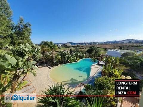 YEARLY RENTAL - TALAMANCA. Welcome to this magnificent three-story villa that offers the ultimate in luxury and comfort. With a total of six bedrooms and eight bathrooms, there?s ample space for you and your guests to relax and unwind. The villa features three spacious living rooms, a fully equipped kitchen, an office for those who need to stay connected, a barbecue bar for outdoor entertaining, a well-equipped gym, and a convenient laundry room. One of the highlights of this villa is the abundance of balconies and terraces, each adorned with comfortable seating and hammocks, providing the perfect vantage points to soak in the stunning views of the Mediterranean Sea, Formentera, and the historic Dalt Vila. Step outside, and you?ll discover a sprawling infinity pool with a beach-like entrance, surrounded by lush gardens and terraces. A meandering river feature adds a touch of serenity, leading to a large pond teeming with colorful fish, creating a peaceful oasis for you to enjoy. For your convenience, the villa offers free Wi-Fi and is equipped with air conditioning to ensure your stay is pleasant year-round. You?ll also have access to private, free parking on the property. This villa is the epitome of a Mediterranean paradise, offering a perfect blend of modern amenities and natural beauty, making it an ideal retreat for those seeking luxury and tranquility by the sea. There is the possibility of seasonal rental for 130.000 Schedule a viewing with our agent.