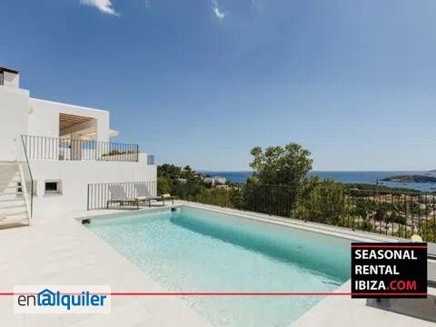 ANNUAL RENTAL - CAN PEP SIMO. Discover the perfect Ibiza retreat with this stunning villa, offering breathtaking panoramic views of Ibiza Town, the sea, and the marina. Located in one of the island?s most prestigious areas, this home provides both tranquility and proximity to the best Ibiza has to offer. Just five minutes from Ibiza Town, Sa Punta, Talamanca Beach, and the charming village of Jesús, where you?ll find supermarkets, pharmacies, and all essential services. The renowned Marina Botafoch, with its exclusive restaurants and nightlife, is also just moments away. This beautifully designed villa combines modern décor with traditional Ibizan charm, creating a stylish yet inviting atmosphere. In the upper floor there?s an expansive terrace with spectacular views, comfortable lounge seating, and an outdoor dining table for up to 10 guests, a spacious living area with contemporary furnishings, fully equipped modern kitchen, guest toilet with laundry area and a private swimming pool. In the lower floor there are five beautifully designed bedrooms, all with double beds. Three of the bedrooms feature en-suite bathrooms, while the other two share a spacious bathroom. Equipped with high-speed internet, ducted air conditioning in the living room and kitchen, and individual air conditioning units in each bedroom, this home ensures maximum comfort. The villa also offers shaded parking for up to three vehicles. Experience luxury living in Ibiza with this spectacular villa, where breathtaking views and elegant design come together in perfect harmony. POSIBILITY FOR SEASONAL RENTAL. Schedule your viewing with our agent.