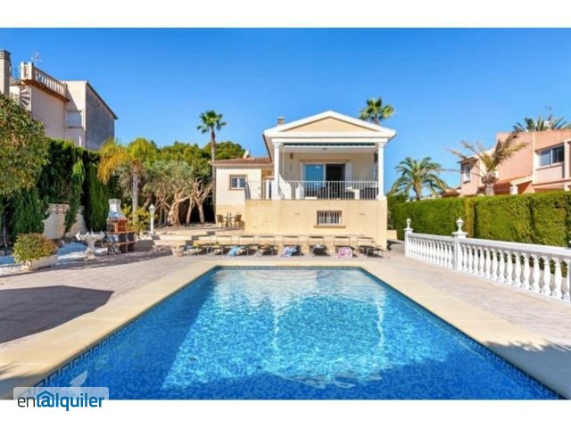 ¡ALQUILER DESDE MARZO PARA TODO EL AÑO! Excelente oportunidad de alquilar un chalet independiente con una amplia parcela de 800 m², ubicado en la zona de Urbanizaciones en Calpe. Este chalet se encuentra a solo 2 kilómetros de la playa, ofreciendo proximidad a servicios y comercios. Características del Chalet: Dormitorios y Baños: El chalet cuenta con 4 dormitorios y 3 baños, distribuidos en dos plantas independientes que están conectadas por escaleras exteriores.Salón y Cocina: Dispone de un acogedor salón-comedor con chimenea, perfecto para momentos en familia, y una cocina independiente completamente equipada, que incluye lavavajillas.Amueblado y Equipado: La propiedad se alquila totalmente amueblada y equipada, lista para entrar a vivir, y cuenta con aire acondicionado para mayor confort.Zona Exterior: La gran parcela de 800 m² incluye una zona de barbacoa y acceso a una piscina comunitaria, rodeada de amplias zonas verdes para disfrutar al aire libre.Mascotas: Se permite la consulta sobre mascotas, lo que facilita la convivencia con tus animales de compañía. No pierdas la oportunidad de vivir en este encantador chalet en Calpe. Para más información, contáctanos al +34 624 45 06 30 o visita nuestra página web https://sunandsearealestate.com/ Referencia: RENT-935MR