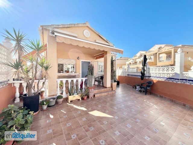 ¡ALQUILER DISPONIBLE DESDE YA PARA TODO EL AÑO! Encantador chalet independiente ubicado en la conocida urbanización Baños de Europa, una zona tranquila y al mismo tiempo muy cerca de todos los servicios. La vivienda cuenta con 55 m² construidos y 100 m² de parcela, ofreciendo amplios espacios exteriores ideales para disfrutar del clima mediterráneo. Distribución y características: 2 dormitorios:Principal con cama de matrimonio y armario empotradoSegundo dormitorio con dos camas individuales y armario empotrado1 baño completoSalón?comedor amueblado, luminoso y con ventilador de techoCocina independiente, equipada con todos los electrodomésticosAire acondicionadoMascotas: no se permiten Exteriores y extras: Porche cubierto perfecto para relajarse en sombraZona de barbacoaSolárium privado en la parte superiorPiscinaGarajeParcela de 100 m² con múltiples posibilidades Ubicación: Situado en Baños de Europa, Torrevieja A 4 km de la Playa de Los NáufragosA 1 minuto de zonas de ocio y serviciosA 61 km del aeropuerto de AlicanteA 17 km del campo de golf Las Ramblas ¿Te interesa? Contamos con un asistente virtual disponible 24/7 para ayudarte en todo el proceso de alquiler. Escríbenos por WhatsApp al +34 624 45 06 30 o por correo a info@sunandsearealestate.com Referencia: RENT-3944MG
