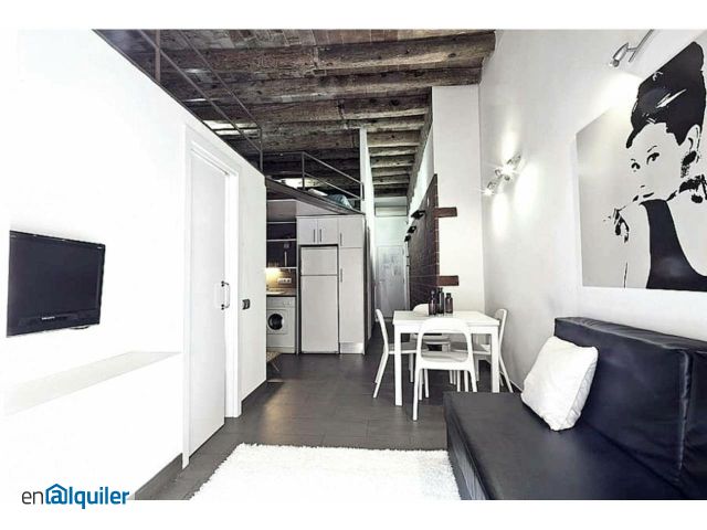 ? RENTAL CONDITIONS: The minimum stay is 32 nights and the maximum is 330 nights. - Landlord's Other Fee: 18% of the total rental value (amount of 1 month calculated in the Rent Summary as "Other". The total amount of the full stay will be charged at the move-in date) - Deposit (refundable) to be indicated depending on the stay length. GROUP APARTMENT IN BORN, BARCELONA This stylish group apartment in Born area is perfect for a bigger company if you're planning a long-term stay in the cultural center of Barcelona. As you enter, a long hallway with red brick walls will lead you to a full bathroom with an elegant dark brown and white color scheme, as well as 2 bedrooms one furnished with a large double bed and another with 2 single beds. Further down you will find an L-shaped open kitchen with pretty granite countertops and all the equipment you will need to cook, as well as a nearby dining space with a white table and 4 chairs. From the kitchen, a staircase leads up to a loft with 2 single beds and views down to the stylish living room, furnished with an elegant black couch and decorated with black and white stencil art of Audrey Hepburn and Charlie Chaplin. The apartment also has access to a private balcony and a community terrace, furnished with a cozy wooden table and benches and perfect for having breakfast before heading out into the city. The apartment is located in the El Born area of Barcelona, just steps from the Arc de Triomf, Ciutadella Park, Picasso museum and the gorgeous plazas that this area has to offer. You will be staying on a nice street with several shops and excellent restaurants, including Picnic (famous for its brunch). The Santa Caterina market is also very close if you prefer buying fresh ingredients to prepare at home. During your stay, you will be close to the Jaume I metro station. GENERAL CONDITIONS: - The rent will be collected on the same day of the month as the check-in date. * If during the last month you stay less than 10 days after that date: you'll pay per extra day * If during the last month you stay more than 15 days after that date: you'll pay one extra month * Pets are allowed. Price per month: onthly: 150?. Pictures of furniture will be taken on the check-in day so to compare with the check-out day in case the pet causes any damage. 8.-Arrivals policy: Monday to Friday: 15h - 18:30: Free of charge 18:30 - 21:00: 30? 21:00 - 23:00: 50? 23h or after: under request Weekends and public holidays: 15h - 21:00: 30? 21:00 - 23:00: 50? 23h or after: under request ** From 10:00 p.m. at 8:00 am. you must be quiet. Parties not allowed. Smoking not allowed. If the police come to the apartment or the neighbors call the Government/Police, you will be evicted from the apartment and/or have to pay a fine. - The apartment does not have any food (there is no coffee, salt, oil, sugar). - We provide guests with a kit of welcome amenities (1-2 toilet rolls, neutral soap in small quantities - they are not for the entire stay). There are always towels and sheets. CATS NOT ALLOWED