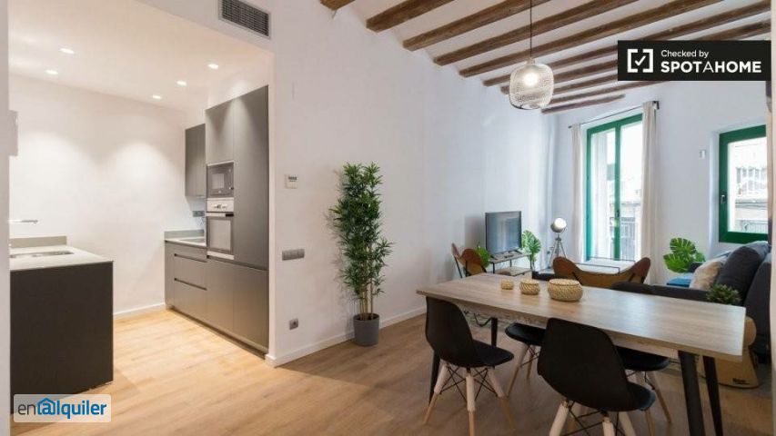 Bienvenido a este encantador apartamento ubicado en el histórico barrio Gótico de Barcelona. Este apartamento de 1 dormitorio está bellamente amueblado y equipado con calefacción central y aire acondicionado. La cocina está totalmente equipada con electrodomésticos modernos como lavavajillas y horno, perfectos para su comodidad. Disfrute del balcón y relájese en los días soleados. Los gastos de luz, agua, gas y wifi están incluidos, una opción ideal para una vida cómoda. Esta propiedad ha sido revisada personalmente por Spotahome. El Gótico es uno de los barrios más antiguos y encantadores de Barcelona. A poca distancia, encontrará lugares emblemáticos como el Casco Viejo, la Casa Natal de Joan Miró y Enrique Tomás. Explore la Sinagoga Mayor de Barcelona y la vibrante Plaza de San Jaime, o disfrute de la estética del Pont del Bisbe en el Barrio Gótico. Viva la auténtica experiencia barcelonesa en esta ubicación privilegiada.