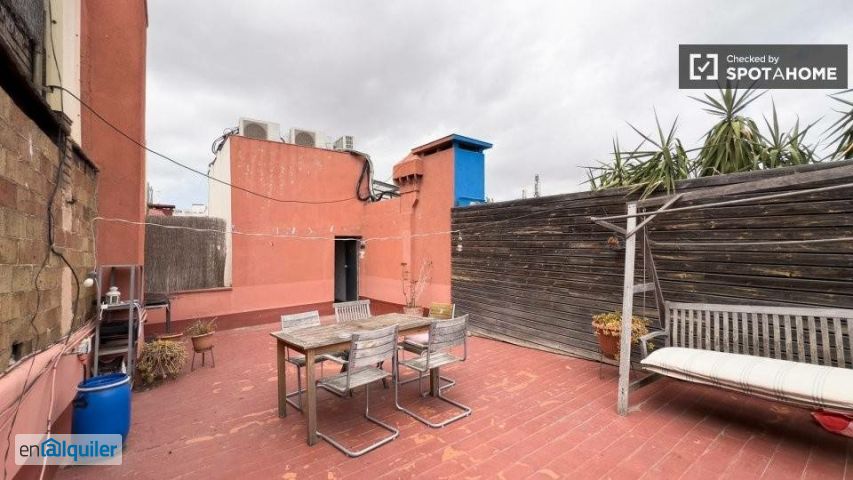 Se alquila piso de 2 habitaciones amueblado en Carrer De Guifré. La vivienda se encuentra en la 4ª planta de un edificio con ascensor. La propiedad incluye balcón y aire acondicionado.