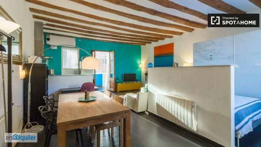 Se alquila estudio amueblado en Carrer Del Dr. Trueta. La propiedad está en el 3er piso. Tiene un techo alto, lo que le da una sensación de gran espacio. No hay vecinos ni ruidos de la calle. La playa está a 5 minutos.