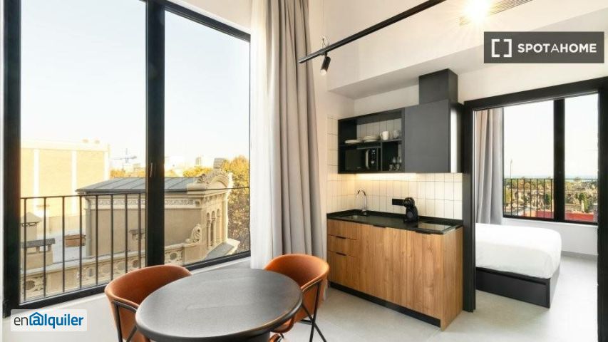 Este elegante estudio en El Poblenou ha sido diseñado pensando en los estudiantes. Está equipado con todo lo necesario para una estancia cómoda, incluyendo una cocina totalmente equipada con electrodomésticos modernos, un balcón privado para disfrutar del buen tiempo y acceso a la piscina. Entre sus comodidades se incluye una lavandería compartida con lavadora y secadora. Los gastos de electricidad, agua, gas y wifi están incluidos, la ropa de cama está incluida y el servicio de limpieza es periódico. Tenga en cuenta que la propiedad es exclusivamente para estudiantes; no se permite fumar ni se admiten mascotas. Esta propiedad ha sido verificada personalmente por Spotahome. El Poblenou es un barrio vibrante y de moda en Barcelona. Esta propiedad ofrece fácil acceso a diversas atracciones, como los famosos locales de Múnich y El Poblenou. Además, disfrute de las delicias culinarias en restaurantes cercanos como Inspiral Multicultural y La Posada, y deguste la deliciosa pizza de Madre Lievito Poblenou.