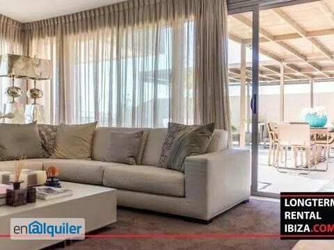 ANNUAL RENTAL - BOTAFOCH. Bright & Spacious Four-Bedroom Apartment with Large Terrace and Parking Located in the heart of Botafoch, this modern and stylish first-floor apartment offers the perfect blend of comfort, space and lifestyle. With a total surface of 100 m², the property features four bedrooms and two bathrooms, including one en suite, making it ideal for families or those seeking extra space. The bright living room enjoys abundant natural light thanks to its floor-to-ceiling windows, and opens directly onto an expansive private terrace. This outdoor space is a true highlight ? featuring a shaded pergola with a dining table for 10, a large outdoor sofa, and beautiful open views over the countryside, perfect for entertaining or relaxing year-round. Inside, the apartment has a fully equipped modern kitchen, high-quality finishes, central air conditioning, and an alarm system for total comfort and security. Additional features include: - Two private underground parking spaces - Community swimming pool - Quiet surroundings with countryside views - Prime location just minutes from Ibiza Town, Talamanca Beach and Marina Botafoch A rare opportunity to live in one of Ibiza?s most desirable residential areas with both privacy and proximity to the island?s top spots. Schedule a viewing with our agent.