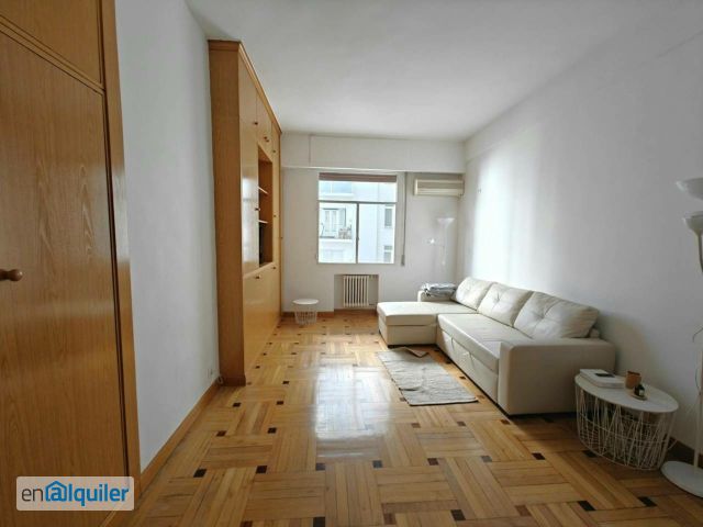 iRent Madrid alquila estudio, en cuarta planta, muy luminoso y en finca con portero físico y ascensor en Nuevos Ministerios a escasos pasos de Paseo de Castellana. El estudio cuenta con un salón, con dos camas individuales abatibles, un amplio sofá cama de tres plazas, mesa y sillas para 4 comensales. Amplios armarios con altillo, estantería, escritorio y suelo de tarima. El estudio cuenta con una pequeña cocina equipada con vitro, nevera y microondas. Baño completo, totalmente reformado, con plato de ducha. El estudio cuenta con aire acondicionado y calefacción central (incluida en el precio). Situado a 5 minutos de, Metro Nuevos Ministerios (Líneas 6, 8 y 10 y Cercanías Renfe), Metro Ríos Rosas (Línea 1), Metro Alonso Cano (Línea 7), Metro Gregorio Marañon (Línea 7 y 10), Calle Ponzano y Paseo Castellana. Un mes de fianza y una mensualidad (más iva) de gastos de servicio y representación de agencia.