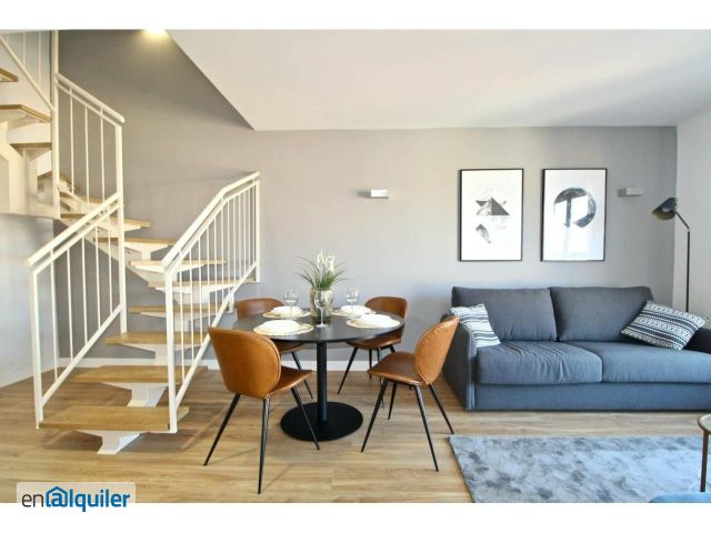 - Fully furnished and equipped with a functional design. - Flexible rental: Options from 1 to 11 months to suit your needs. - High-speed internet. - Customer service from 9 am to 6 pm, Monday to Friday. - Home maintenance included. - The rental price adjusts according to the check-in and check-out dates. - Pets welcome: ?300 per pet per stay. - No agency fees. - We exclusively manage and market all the apartments in the building, ensuring peace and good coexistence. - Weekly cleaning service and linen change: This service includes: Changing bed sheets and bathroom towels. Dirty ones are removed and replaced with clean ones(hidden)anizing the bathroom and disinfecting the toilet and sink. Vacuuming the floor. Taking out the trash. - Service fee 150?: Includes administrative management, apartment maintenance, 24/7 assistance, and utility setup. - Services not included: Utilities Final cleaning This duplex is located in the peaceful neighborhood of Adelfas in the Retiro district. It is fully furnished and equipped, with a communal pool and chill out area. This two-story apartment includes a living-dining area and an open-plan kitchen. On the second floor, there is a bright bedroom with a spacious wardrobe.