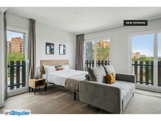 APARTMENT Enjoy the ultimate privacy and convenience of your very own studio. This fully equipped and furnished space includes a stylish living area to unwind and relax, a kitchenette to cook your favorite meals, and a private bathroom. PROPERTY With stylish studios, 1-bedroom, and 2-bedroom apartments, this modern building is your answer to unlocking flexible stays in Madrid. Located in Ensanche de Vallecas, this property offers an integrated way of living that suits different lifestyles, including fully furnished spaces and top-notch amenities. Residents can enjoy a moment of relaxation in the terrace and swimming pool, challenge their fitness game at the gym, or have a movie night in the cinema room. The building also includes co-working spaces and meeting rooms, the perfect spaces for productivity and focus, as well as common rooms and outdoor garden areas.