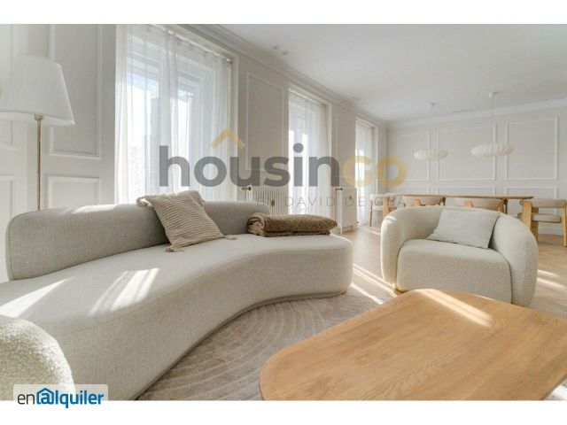 HousinGo presenta esta magnífica vivienda en alquiler en el barrio de Argüelles, uno de los enclaves más atractivos y animados de Madrid. A pocos metros de la Plaza de España y del emblemático Templo de Debod, la zona ofrece amplias áreas verdes, agradables paseos y una excelente variedad de restaurantes, cafés y espacios culturales. Su ubicación privilegiada garantiza, además, una comunicación inmejorable mediante varias líneas de metro y autobús. La vivienda se encuentra en la tercera planta de una cuidada finca de 1900 con ascensor, que combina el encanto clásico con la comodidad actual. Totalmente reformada, la vivienda cuenta con 135 m² distribuidos con gran sentido del espacio y la luz. Tras el hall de entrada accedemos a un amplio salón-comedor en esquina, un espacio social excepcional gracias a sus cuatro balcones a la calle, que llenan la estancia de luminosidad durante todo el día. La sala destaca por sus molduras originales en techos y paredes, su mobiliario de lujo, una elegante chimenea de bioetanol y una televisión de gran formato, creando un ambiente acogedor y sofisticado. La cocina se sitúa junto a la zona social y se presenta semi-independiente, completamente equipada y unida al salón mediante dos arcos franceses que aportan continuidad visual y un toque clásico. La vivienda incorpora también un aseo de cortesía y una práctica zona de lavandería equipada con lavadora y secadora. La zona de descanso ofrece dos dormitorios en suite, ambos con vestidor. El principal cuenta con cama doble, mientras que el segundo incorpora dos camas individuales, adaptándose a distintas necesidades sin perder confort ni privacidad. En conjunto, esta vivienda destaca por su luminosidad, su cuidada reforma y su ubicación privilegiada, convirtiéndose en una opción ideal para disfrutar de un estilo de vida cómodo, moderno y exclusivo en pleno corazón de Madrid. Argüelles es un barrio histórico que combina su encanto del siglo XIX con la vida moderna. Destaca por su ubicación céntrica cerca del Parque del Oeste, el Templo de Debod y la Plaza de España, ofreciendo un entorno verde y tranquilo. Su amplia oferta gastronómica, comercial y de ocio lo convierte en un lugar ideal para disfrutar de la vida urbana con comodidad. HousinGo, by David de Gea. Somos una agencia inmobiliaria especializada en la venta y alquiler de viviendas en zonas prime de Madrid.  En nuestra página web puedes acceder a los inmuebles que tenemos disponibles, además de nuevas oportunidades de inversión que se comercializan totalmente off-market y que gestionaremos para ti de manera personalizada.  Si está interesado en alquilar, vender o comprar, puede contactarnos a través de nuestro teléfono fijo 910 053 963, enviarnos un WhatsApp a +34 722 54 49 50, o visitarnos en nuestras oficinas. Disponemos de un servicio de Call Center 24 horas al día, 365 días al año, para poder atenderles de manera ininterrumpida.