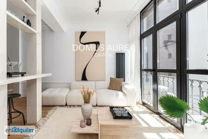 Domus Aurea Capital presenta este piso de 2 habitaciones recién reformado en el Barrio de Salamanca en Madrid, muy próximo al Parque del Retiro. Vivienda interior de 90 m2 situada en un edificio clásico con grandes ventanales de suelo a techo y espacios abiertos que permiten que entre mucha luz, favorecido además por la orientación sur. Se distribuye en un elegante salón-comedor conectado a la cocina abierta a través de una estructura de mármol que funciona como mesa informal y estructura decorativa. En la zona de noche encontramos dos dormitorios en suite con baño completo. Cuenta con calefacción central, aire acondicionado y trastero. Domus Aurea Capital es una agencia inmobiliaria especializada en la intermediación, construcción y gestión de activos inmobiliarios en las zonas prime de Madrid y alrededores.