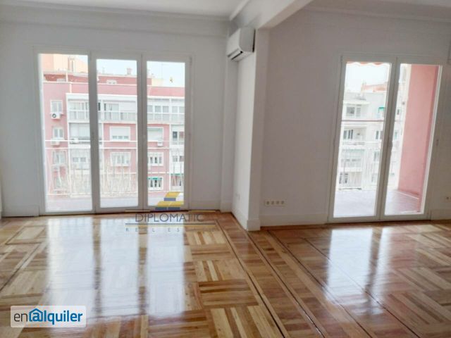 Diplomatic Real Estate ofrece piso moderno todo exterior, muy luminoso y totalmente insonizado. Dispone de salón de 35 m2., con chimenea y comedor independiente. 2 dormitorio dobles con baño en suite y otro individual. 3 baños. Cocina moderna equipada con electrodomésticos alta gama. Armario empotrados. Terraza de 12 m2. Conserje residente. No se cobra comisión ni gastos de gestión al arrendatario Esperamos su llamada,91 564 77 00 Diplomatic Real Estate con más de 25 años en el sector inmobiliario y una amplia cartera de viviendas de lujo, locales, oficinas y edificios ofrece asesoramiento completo a sus clientes tanto en alquiler como en compra venta de inmuebles.