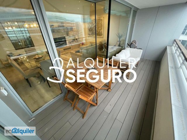 Estupenda vivienda de 135 m2 construidos. Consta de 3 dormitorios y 2 baños completos. La renta incluye dos plazas de garaje y gastos comunitarios. Primeras calidades, amplio salón independiente con acceso a terraza exterior de 10 m2, cocina totalmente equipada con electrodomésticos de primeras marcas y amueblada, con acceso a terraza tendedero. Dormitorio principal con baño en suite y vestidor, armarios empotrados, climatización por conducto en toda la vivienda, suelo radiante, domótica, vivienda exterior con grandes ventanales, muy luminoso. La vivienda se entrega sin amueblar, en finca con ascensor, jardines, piscina, pádel, portería, gimnasio, zona infantil y sala de reuniones. Zona tranquila, cercano al Parque Felipe VI, campo de golf "La moraleja Campo 2" y Mercadona. No admiten animales.
