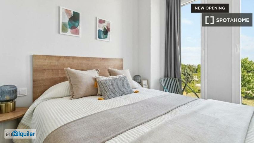 Con elegantes estudios y apartamentos de 1 y 2 dormitorios, este moderno edificio es la solución ideal para disfrutar de estancias flexibles en Madrid. Ubicado en el Ensanche de Vallecas, este alojamiento ofrece un estilo de vida integrado que se adapta a diferentes estilos de vida, incluyendo espacios completamente amueblados y servicios de primera clase. Los residentes pueden disfrutar de un momento de relax en la terraza y la piscina, ponerse en forma en el gimnasio o disfrutar de una noche de cine en la sala de cine. El edificio también incluye espacios de coworking y salas de reuniones, ideales para la productividad y la concentración, así como salas comunes y zonas ajardinadas exteriores. Planta: 5.ª