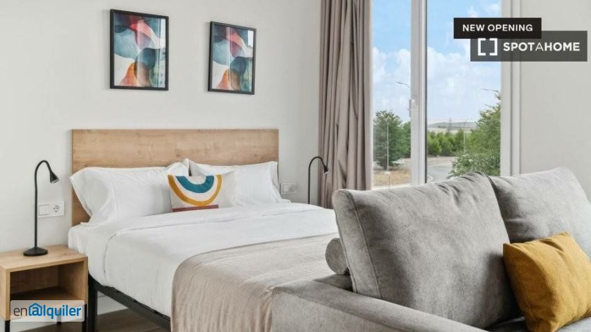 Con elegantes estudios y apartamentos de 1 y 2 dormitorios, este moderno edificio es la solución ideal para disfrutar de estancias flexibles en Madrid. Ubicado en el Ensanche de Vallecas, este alojamiento ofrece un estilo de vida integrado que se adapta a diferentes estilos de vida, incluyendo espacios completamente amueblados y servicios de primera clase. Los residentes pueden disfrutar de un momento de relax en la terraza y la piscina, ponerse en forma en el gimnasio o disfrutar de una noche de cine en la sala de cine. El edificio también incluye espacios de coworking y salas de reuniones, ideales para la productividad y la concentración, así como salas comunes y zonas ajardinadas exteriores. Disfrute de la máxima privacidad y comodidad en su propio estudio. Este espacio, totalmente equipado y amueblado, incluye una elegante sala de estar para relajarse y desconectar, una pequeña cocina para preparar sus platos favoritos y un baño privado. Planta: 4.ª