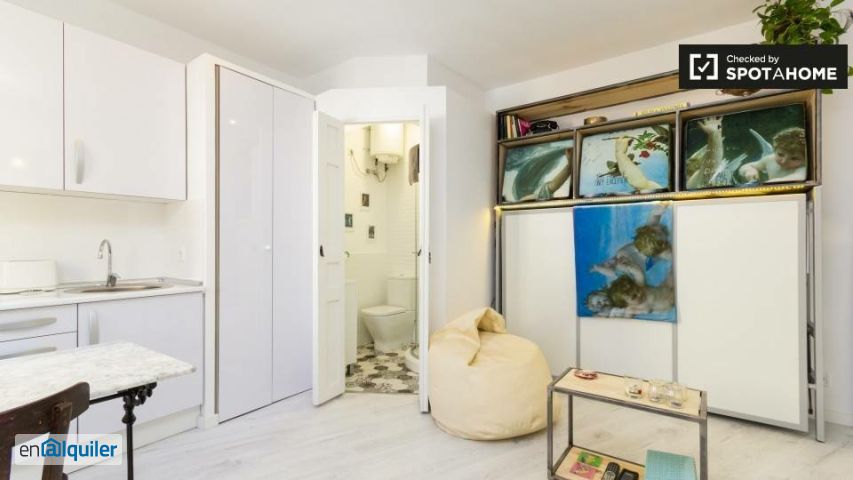 Spotahome presenta este estudio amueblado disponible para alquilar en Embajadores, Madrid. El estudio cuenta con aire acondicionado individual, lavadora y calefacción eléctrica. Está completamente amueblado, equipado con TV y preparado para alojar a cualquier inquilino (profesionales, estudiantes, parejas o Erasmus). La propiedad ha sido verificada personalmente por el verificador de viviendas de Spotahome, lo que garantiza una evaluación completa del perfil del propietario y sus estándares de vivienda. Situado en la vibrante zona de Embajadores, a poca distancia a pie se encuentran importantes atracciones como la Iglesia Católica, el Palacio de Fernán Núñez y el Monumento a los Abogados de Atocha. Disfrute de lugares de interés cultural como la Sociedad Cervantina-Imprenta del Quijote y el Barrio del Sol de Madrid. La calle Lavapiés también está cerca, ofreciendo un ambiente animado y un encanto urbano.