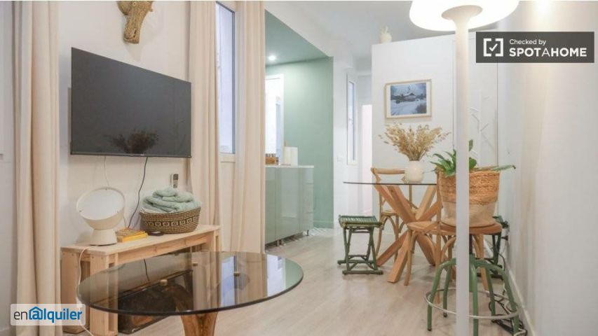 ¿Buscas un estudio en Embajadores? Este estudio está completamente amueblado y equipado para una vida cómoda. La propiedad cuenta con aire acondicionado individual, calefacción de gas natural y sistema de agua caliente eléctrica. La cocina está totalmente equipada e incluye lavavajillas, horno y lavadora. Se permite fumar, pero no se admiten mascotas. Solo se aceptan trabajadores como inquilinos. Embajadores es un barrio vibrante de Madrid con numerosos atractivos turísticos, como la Plaza de Arturo Barea y el Barrio de Lavapiés. Otros lugares de interés cercanos son la Calle de Lavapiés, la Iglesia de la Patólica y La Tabacalera de Lavapiés. La zona ofrece una animada vida cultural y fácil acceso a los servicios locales.