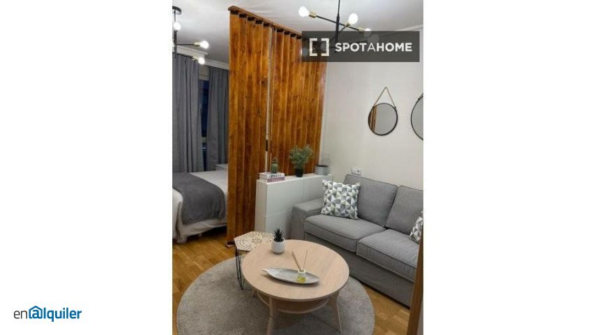 Este encantador estudio en alquiler se encuentra en Palos de Moguer, Madrid. El apartamento está completamente amueblado e incluye electricidad, agua, gas y WiFi en el precio del alquiler. Dispone de una cocina equipada con lavavajillas y horno, aire acondicionado, agua caliente y calefacción central. Hay una lavadora compartida a disposición de los residentes, y el edificio cuenta con acceso a una piscina y ascensor. El alojamiento es ideal para profesionales, estudiantes y parejas. El edificio ofrece servicio de portero para mayor comodidad. Spotahome ha visitado y comprobado personalmente el alojamiento, garantizando un servicio de confianza. Situado en el encantador barrio de Palos de Moguer, el alojamiento está cerca de varios puntos de interés. Restaurantes como Buenaventura y La Espabilá se encuentran a pocos pasos, y un supermercado Mercadona está cerca para las compras. La zona cuenta con atracciones importantes como la Plaza Mayor de Madrid, a pocos minutos, y la Parroquia María Auxiliadora. El barrio ofrece excelentes conexiones de transporte para disfrutar de un estilo de vida cómodo.