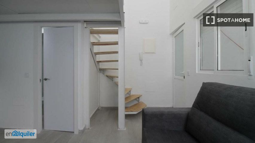 ** El desván ** _Porque amo la luz natural_ ** ¿Me gustará aquí? ** Probablemente. ¿Te encanta pasar tiempo al aire libre? Viviendo en este maravilloso y luminoso apartamento, puede correr y hacer un picnic en el Parque Olof Palme y relajarse en el Parque de Pradolongo. **¿De Verdad? Dime más...** Puedes subir una escalera de caracol para llegar a tu área de descanso a nivel de loft. El salón es minimalista. Vístelo con almohadas de colores o una imagen en la pared. Creemos que este apartamento es ideal para personas amantes de la naturaleza. Estás a una corta distancia a pie de hermosos parques. El río Manzanares está a 15 minutos. La cocina internacional es fácil de encontrar. ** Sus 3 razones principales para vivir aquí: ** - Duerma en un espacio loft fresco con una escalera de caracol. - Viste la decoración minimalista con un toque de tu personalidad. - Trotar, hacer un picnic, pasear y relajarse en numerosos parques cercanos. ** Pero necesitas saber esto ... ** - No hay una lavadora privada; sin embargo, el edificio tiene una sala de lavandería. - Hay un techo bajo en el área de dormir de nivel loft. ** Nuestro inspector de casas, Marcos, dijo: ** _ "Es exterior y ha sido recientemente renovado. Está en una zona residencial de Madrid, por lo que es muy tranquilo aquí". _ ** Ayúdame a decidir ... ** Este es un estudio en planta baja en la calle Rodrigo Uhagón en Madrid. Tienes un espacio de vida minimalista y un área para dormir a nivel de loft. Hay una sala de lavandería en el edificio. Es ideal para aquellos que disfrutan pasar tanto tiempo al aire libre como sea posible. Trotar en los parques cercanos. Pasea por el río. Encuentre una variedad global de alimentos en restaurantes cercanos.