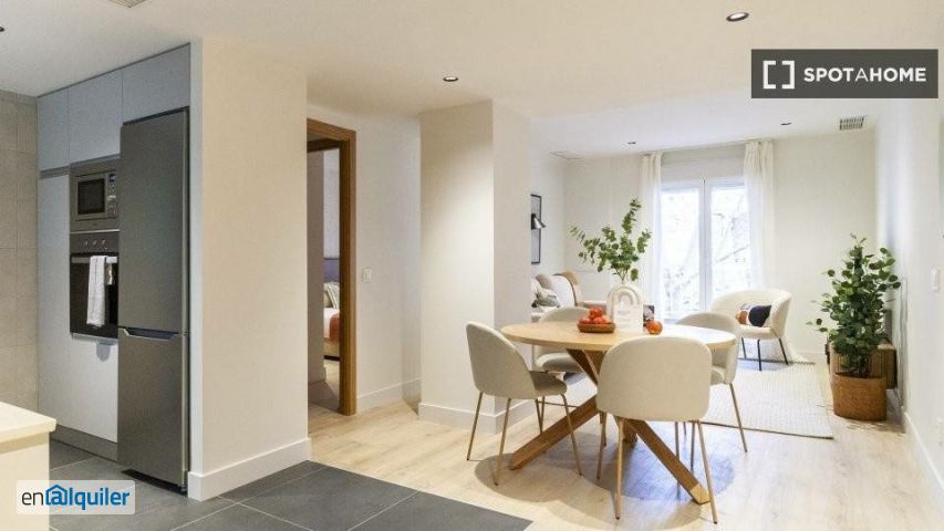 Descubre la vida moderna en este apartamento de 2 dormitorios ubicado en Nueva España, Madrid. Esta propiedad exterior está completamente amueblada, cuenta con aire acondicionado y calefacción central, y ofrece una cocina equipada con lavavajillas, horno, secadora y TV. Se admiten familias, estudiantes, profesionales, parejas y estudiantes Erasmus. El apartamento ha sido revisado personalmente por Spotahome, lo que garantiza los estándares de calidad. Nueva España es una zona residencial de Madrid con excelente conectividad y atracciones cercanas. En las inmediaciones encontrarás restaurantes como el Restaurante Saffron-Mediterranean Food, Asgaya y la Taberna Al Remate. El supermercado La Frutería está cerca para comprar productos básicos. Lugares de interés como la Plaza de Castilla y el Monumento a Calvo Sotelo enriquecen el barrio, convirtiéndolo en un lugar perfecto para una vida urbana y cómoda.