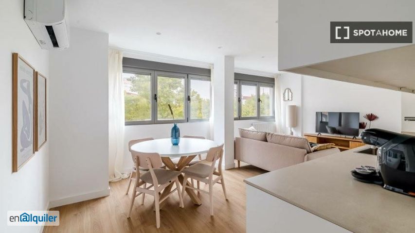 Bienvenido a un impresionante apartamento de 2 dormitorios en el vibrante barrio de Guindalera. Esta propiedad está completamente amueblada y equipada con calefacción central y aire acondicionado para una comodidad máxima. También cuenta con balcón o terraza y cocina equipada con lavavajillas. Además, todos los gastos de luz, agua, gas y wifi están incluidos. Se admiten mascotas y el apartamento ha sido revisado por especialistas de Spotahome para su tranquilidad. No se permite fumar. La propiedad se encuentra en el animado barrio de Guindalera, en Madrid. Entre los lugares de interés cercanos se incluyen restaurantes como Abanto Restaurante, Cafetería Jara y Casa Braulio, así como atracciones turísticas destacadas como el Bajorrelieve del Encierro y el Monumento al Doctor Fleming. Descubra su encanto y comodidad hoy mismo.