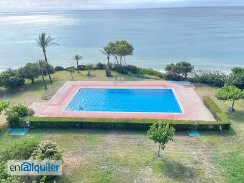 Apartamento en primerísima línea con impresionantes vistas frontales al mar. Consta de salón-comedor, cocina semindependiente, dos habitaciones dobles, un baño completo y terraza con vistas a la zona comunitaria y al mar. Se alquila completamente amueblada y equipada. Climatización en todas las estancias. Exclusiva y paradisíaca zona comunitaria con piscina delante del mar, extensa zona ajardinada y arbolada circundante y acceso directo a una espectacular playa contigua. Plaza de parking cubierta dentro del recinto comunitario. Conserje todo el año.