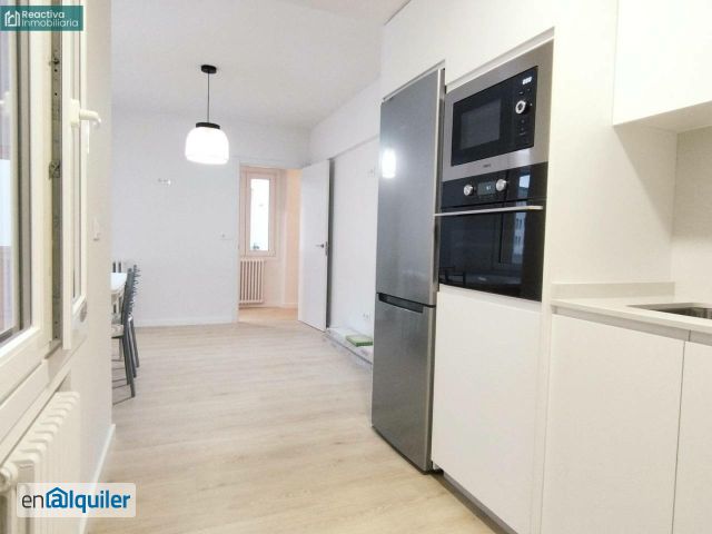 Os presentamos un PISO SENSACIONAL, con ASCENSOR, PLAZA DE GARAJE (para vehículo pequeño) y TRASTERO. Está RECIÉN REFORMADO con muy buen gusto. Es de destacar los suelos laminados, la excelente calidad de las ventanas de PVC, y en general la luminosidad y amplitud de todas las estancias. La calle Montero Ríos se ubica en la mejor zona del ENSANCHE COMPOSTELANO, muy cerca de la plaza Roja y de la Alameda, lo que nos permite evitar el uso del vehículo en nuestro día a día, pues todo tipo de servicios y establecimientos están a un paso: centro de salud, farmacias, clínicas, gimnasios y centros deportivos, colegios, academias, tiendas de alimentación y supermercados, cafeterías y restaurantes, entidades bancarias, asesorías, peluquerías, etc. Podríamos destacar que en solo unos minutos se puede llegar andando a la ZONA MONUMENTAL, y en lo relativo a zonas verdes, en menos de 5 minutos ESTARÍAMOS EN LA ALAMEDA. A pie podemos desplazarnos perfectamente al CAMPUS SUR de la UNIVERSIDAD o al HOSPITAL CLÍNICO. La vivienda, de unos 90 m2 útiles, se distribuye en: - un VESTÍBULO bastante espacioso. - una COCINA amplísima, con enorme espacio para mesa de comedor + una zona de salita, equipada con electrodomésticos a estrenar. - 2 BAÑOS completos, con plato de ducha y sanitarios y grifería modernos. - 4 DORMITORIOS (dos de ellos con armarios empotrados). Dos de los dormitorios son interiores, con ventana al patio de luces. Los otros dos dan a la calle Montero Ríos, uno de ellos con un balcón-galería. - (Uno de estos dormitorios podría habilitarse como salón) El edificio dispone de acceso a personas con movilidad reducida. Condiciones para el alquiler: Se alquila para LARGA DURACIÓN. 1 mes de fianza y 1 mes de garantía adicional. Se podrá exigir Seguro de Impago. Se deberá justificar solvencia. El piso se alquila con el mobiliario que aparece en las fotos (en caso de quererlo con más mobiliario, se puede consultar con los propietarios). Los gastos de COMUNIDAD y de CALEFACCIÓN están INCLUIDOS. En Reactiva Inmobiliaria contamos con servicio de intermediación financiera, por si necesitasen financiación bancaria. La información contenida en este anuncio puede contener errores, por lo que no tiene valor contractual.