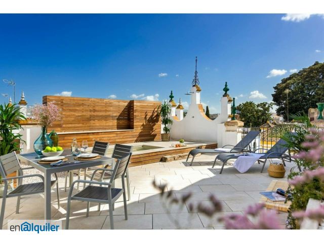 Discover the absolute charm of this stunning duplex apartment, located in a captivating restored Sevillian townhouse, nestled between the picturesque streets of Santa Teresa and the impressive Santa Cruz Square. Meticulously restored, this space showcases the original architectural elements, creating an exceptional environment where our guests can indulge in unparalleled tranquility and comfort. As you step into the ground floor, you?ll be greeted by a modern, fully equipped kitchen and a cozy dining table, along with one of the bedrooms. Moving upstairs, you?ll find a light-filled living room, illuminated by a skylight and a window offering panoramic views of the majestic Giralda tower. On this floor, you?ll also discover the second bedroom. Both bedrooms feature en-suite bathrooms with showers. One boasts a spacious queen-size bed measuring 1.50 x 1.90 meters, while the other offers two twin beds measuring 0.90 x 1.90 meters each. Undoubtedly, the highlight of this apartment is its magnificent terrace with a sun deck and a refreshing shallow pool (open from 15th March to 3rd November), allowing you to cool off while enjoying breathtaking views of the charming Santa Cruz neighborhood and the iconic Giralda tower. The surrounding area of the apartment is simply incomparable. Santa Teresa Street and Santa Cruz Square are two enchanting locations, brimming with history and tradition. Just steps away from the apartment, you?ll find cozy traditional bars where you can savor the city?s finest tapas, as well as small shops and countless places and corners to explore. The Cathedral, the Alcázar, and the Giralda are within a short walking distance, inviting you to discover these architectural marvels in all their splendor The booking of each (hidden) accommodation includes the offer of extra experiences or activities to improve your experience, which are managed by external providers, who will inform you by e-mail or (hidden), and you can contract or refuse them. For more information about the management of experiences and extra activities of the accommodations, please visit our Privacy Policy on our official website. ** For monthly stays, water and electricity supplies will be included up to a maximum of ? 100 per month. If the expenses are higher, the guest will have to pay the difference. The corresponding invoice will be sent by the accommodation to the guest to verify the expenses** During your stay, the access to the property is limited exclusively to the number of individuals specified at the booking process. Consequently, entry to the property is strictly prohibited for persons not registered as guests. Failure to adhere to this rule will result in an additional charge amounting to 50% of the total cost of the stay as a penalty, or alternatively, immediate expulsion from the accommodation.