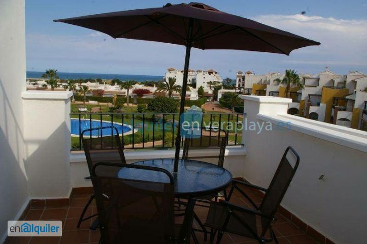 ALQUILER VACACIONAL POR SEMANAS O QUINCENAS Estupendo apartamento de 1 dormitorio situado en la urbanización Mirador de Vera en 1ª línea de playa. El apartamento se encuentra en 2ª planta y el cual se encuentra de la siguiente manera a la entrada encontramos estupendo salón con decoración moderna y vistas al mar, cocina totalmente equipada, baño completo, dormitorio doble con vistas al mar, terraza con vistas al mar y al interior de la urbanización. La vivienda cuenta con Aire acondicionado Capacidad para 2 personas Parking en el interior de la urbanización Vistas la mar La urbanización se encuentra totalmente cerrada, tiene conserje, piscina comunitaria para niños y adultos, zona infantil, zonas ajardinadas, acceso directo a la zona de playa y aparcamientos. Encontraremos cerca bares, restaurantes, supermercado, parque acuático, pistas de padel y tenis, alquiler de bicicletas, etc.