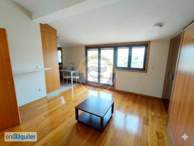 Es un tercero sin ascensor. Fantástico ático-estudio nuevo, soleado y totalmente amueblado, aunque no dispone de sofá. Cuenta con una cama de 1,35 cm escondida en un mueble armario y posibilidad de acomodar otro colchón de 1,35 en el altillo situado sobre el baño. Dispone de cocina amueblada y equipada con electrodomésticos, así como de 1 baño completo con ducha y mampara. Desde el salón se accede directamente a una amplia terraza de 20 m2. La vivienda está ubicada en el centro de vigo y se arrienda con trastero. Los gastos comunida y seguro de alquiler esta incluido. No se admiten mascotas. El arrendamiento es solo para períodos superiores a un año.