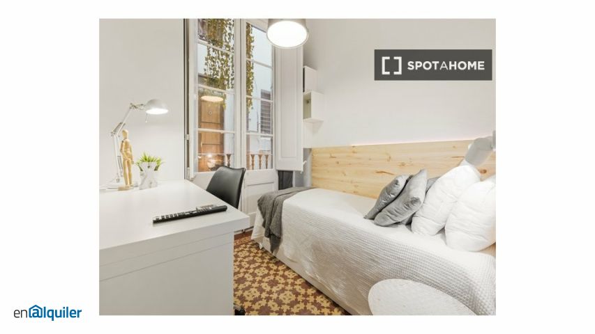 Esta espaciosa habitación se encuentra en un piso compartido de 5 habitaciones en el vibrante barrio de la Dreta de l'eixample de Barcelona. El apartamento está completamente amueblado y ofrece una estancia confortable con comodidades como lavadora, tv, cocina equipada y balcón. Ofrece excelentes condiciones de vida para profesionales y estudiantes. No se admiten parejas ni familias. Dado que Spotahome revisa personalmente este anuncio, garantizamos que la propiedad cumple con los estándares descritos. También disfruta de servicio de limpieza periódico. La Dreta de l'eixample es conocida por su ambiente animado y sus atractivos culturales. En las inmediaciones, encontrará restaurantes de renombre como Nostrum, Celebre y Tagliatella (Passeig de Sant Joan n. º 54), que ofrecen una amplia variedad gastronómica. La zona cuenta con numerosos destinos turísticos, como la Casa Giol y el Monumento al Doctor Andreu. Para ir de compras o disfrutar de una experiencia única, el Mercado de la Concepción también está a poca distancia.