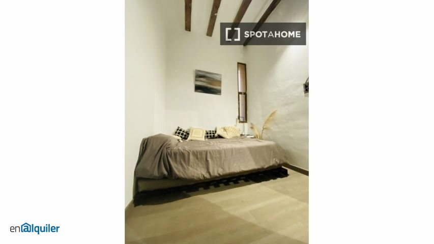 Esta es una habitación compartida amueblada ubicada en el barrio de Sant Pere Santa Caterina i la Ribera de Barcelona. La propiedad incluye aire acondicionado individual, calefacción central y cocina equipada con horno. También hay un balcón para relajarse. Se permite fumar dentro de la propiedad. Tenga en cuenta que la propiedad ha sido revisada personalmente por Spotahome, lo que garantiza los estándares de calidad para los posibles inquilinos. No se admiten parejas. La propiedad se encuentra en Sant Pere Santa Caterina i la Ribera, una zona vibrante de Barcelona. Está cerca de varias atracciones turísticas conocidas, como la Font a Marieta de l'ull Viu, a poca distancia a pie. Otras atracciones cercanas incluyen el Archivo Fotográfico de Barcelona, la Plaza Sant Agustí Vell y la Fundación Blueproject. Disfrute de vivir en una zona animada y cultural de la ciudad con fácil acceso a los lugares de interés locales.