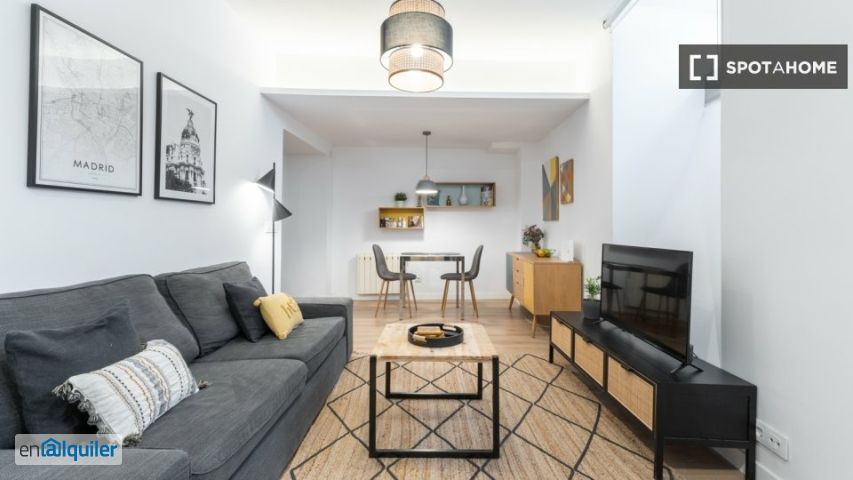 Descubre este apartamento de 1 dormitorio disponible en el barrio del Palacio de Madrid. El apartamento está completamente amueblado y cuenta con aire acondicionado central, calefacción eléctrica y una cocina totalmente equipada con horno. Se permite fumar y, aunque se admiten mascotas con restricciones, el precio incluye todos los gastos: luz, agua, gas y wifi. Esta propiedad ha sido verificada por Spotahome. El apartamento se encuentra en el barrio del Palacio de Madrid, cerca de numerosos lugares de interés. Entre las atracciones cercanas se incluyen el Palacio del Senado, la Plaza Homenaje a Domenico Scarlatti y la Gran Bola de Navidad. Su proximidad a lugares como la Fuente del Cielo, los Monumentos Tubulares y el Monumento a Don Quijote de la Mancha hace de esta ubicación una opción muy atractiva para quienes desean disfrutar de la riqueza cultural de Madrid.