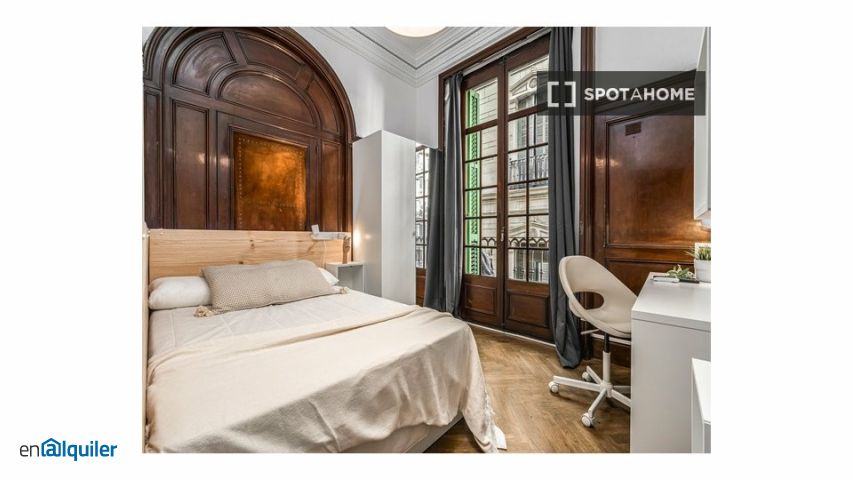 Bienvenido a esta habitación en un piso compartido de 7 habitaciones en Sant Pere, Santa Caterina i la Ribera, Barcelona. La propiedad, verificada por Spotahome, ofrece un espacio exterior con balcón. Cuenta con un espacio amueblado y equipado con cocina con horno y lavadora. Solo se admiten mujeres, y profesionales, estudiantes y Erasmus pueden alquilar esta propiedad. Ubicado en Sant Pere, Santa Caterina i la Ribera, este apartamento está rodeado de varios lugares emblemáticos. A poca distancia, encontrará la Casa de la Seda, el Beso de Joan Fontcuberta, la Escultura Carmela y el Monumento a Víctor Ochoa Escultor. Además, el emblemático Palau de la Música Catalana y el Portal de l'àngel están cerca. Disfrute de la comodidad de este vibrante e histórico barrio.
