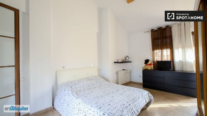 Habitación con balcón y baño privado en apartamento de 3 dormitorios en Campanar.