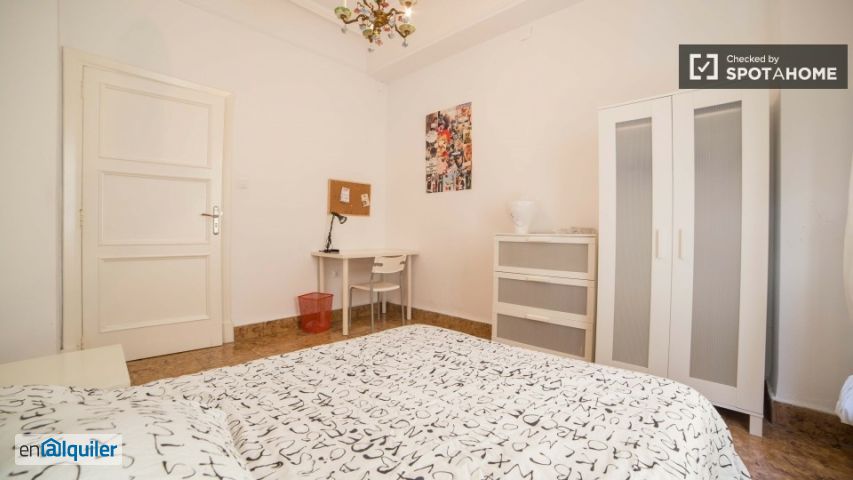 Se alquilan habitaciones con cama de matrimonio en piso de 6 habitaciones y 1 aseo en el centro de Valencia. Este apartamento de 140 m² está completamente amueblado y equipado con todos los electrodomésticos necesarios, incluida 1 lavadora. Todas las habitaciones han sido renovadas recientemente y se proporcionan muebles nuevos. Vivirás en el corazón de la ciudad. Todos los puntos de interés famosos están cerca, incluido el Mercat Central y la Catedral de Valencia, así como tiendas y restaurantes. Estará cerca de muchas plazas soleadas y de varias paradas de autobús que facilitan el acceso a la Universidad de Valencia y a la playa.