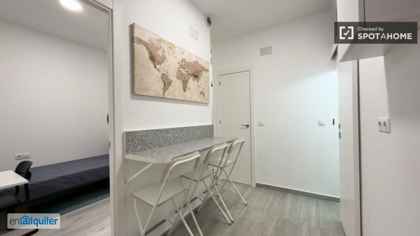 La vivienda es de 60 metros cuadrados y está amueblada; está compuesta por 3 habitaciones y 1 baño. Este habitación está alquilado por una agencia.