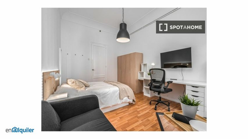 Bienvenido a esta habitación en un piso compartido de 7 habitaciones en Sant Pere, Santa Caterina i la Ribera, Barcelona. La propiedad, verificada por Spotahome, ofrece un espacio exterior con balcón. Cuenta con un espacio amueblado y equipado con cocina con horno y lavadora. Solo se admiten mujeres, y profesionales, estudiantes y Erasmus pueden alquilar esta propiedad. Ubicado en Sant Pere, Santa Caterina i la Ribera, este apartamento está rodeado de varios lugares emblemáticos. A poca distancia, encontrará la Casa de la Seda, el Beso de Joan Fontcuberta, la Escultura Carmela y el Monumento a Víctor Ochoa Escultor. Además, el emblemático Palau de la Música Catalana y el Portal de l'àngel están cerca. Disfrute de la comodidad de este vibrante e histórico barrio.
