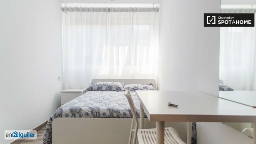 El lugar para estudiantes con estilo _porque vas a estudiar con estilo_ ¿me gustará aquí? Tal vez. ¿eres un estudiante en busca de un hogar moderno en el centro de Valencia? Entonces echa un vistazo a este gran apartamento. ¿de Verdad? Dime más Tendrás todo lo que necesitas en este encantador apartamento. Con muebles modernos, mucha luz natural y una excelente ubicación cerca de la playa en el centro de Valencia, esta casa es bonita y práctica. Creemos que este es un lugar ideal para un estudiante de moda y en movimiento que busca un hogar con otros estudiantes. Sus 3 razones principales para vivir aquí: - Admira la decoración elegante, tan moderna. - Nunca espere su turno para ir al baño— el dormitorio 4 tiene baño privado. - Termine su ropa en un tiempo récord, tendrá una lavadora y secadora para usar. Pero necesitas saber esto - el apartamento no tiene aire acondicionado, tendrás que ir a la playa para mantenerte fresco en verano. - Las habitaciones aquí solo están disponibles para alquilarlas a estudiantes, lo sentimos, profesionales. Dame esto directamente Este es un encantador apartamento de 4 dormitorios en Carrer del Pintor Ferrer Calatayud, Valencia. Es moderno, es brillante y está cerca de la playa. ¿qué es no amar? La ubicación es excelente: el apartamento está a solo 15 minutos a pie de la playa, y cerca encontrará todos los restaurantes, cafés, bares de tapas y tiendas que pueda desear. Excelente.