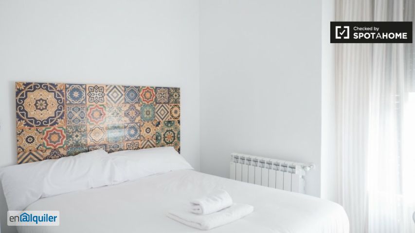 Linda habitación con cama matrimonial en alquiler en el centro de madrid.