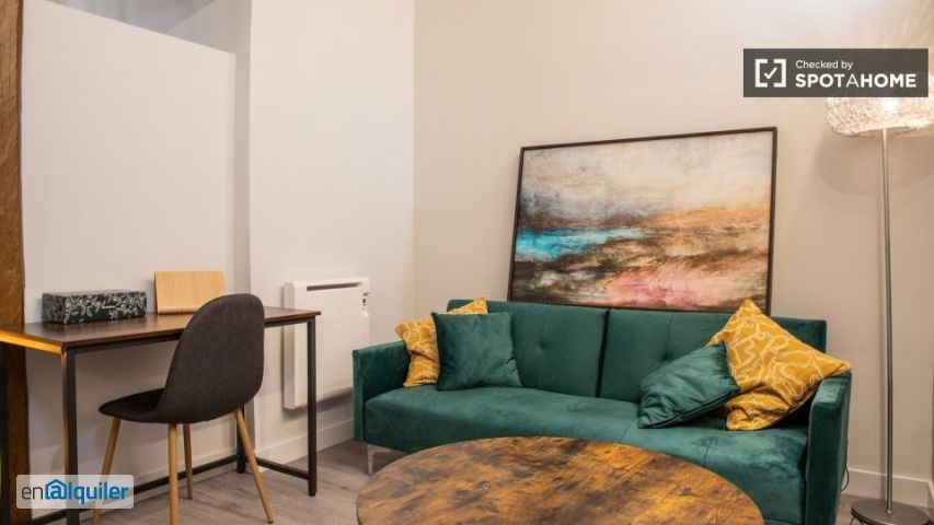 Spotahome presenta un encantador apartamento interior de 1 dormitorio en alquiler en el barrio de Embajadores, Madrid. Esta propiedad se entrega completamente amueblada y cuenta con lavadora y secadora, tv y cocina equipada con horno. Además, incluye todos los gastos de luz, agua, gas y wifi. No se admiten mascotas ni fumar, lo que garantiza un ambiente limpio y confortable. Embajadores es un barrio vibrante, conocido por su ambiente animado y su proximidad a importantes atracciones. En las inmediaciones, encontrará lugares emblemáticos como el Monumento a los Abogados de Atocha y la Iglesia Católica, así como el histórico Barrio del Sol de Madrid. Disfrute de una exploración cultural en medio de la rica historia que rodea este lugar.