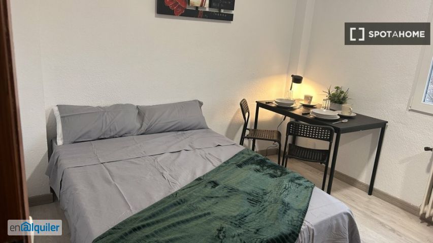 Explora este maravilloso apartamento compartido de 5 habitaciones en Fuenlabrada, Madrid. La propiedad cuenta con cocina totalmente equipada, calefacción central, agua caliente central y un encantador balcón para relajarse. Además, el apartamento incluye lavadora común y evita el uso del lavavajillas, lo que garantiza una vida diaria cómoda. Se permite fumar. No se admiten mascotas ni invitados. Aunque no se admiten parejas, ¡tanto profesionales como estudiantes son bienvenidos! Todos los servicios están incluidos y la propiedad ha sido verificada por Spotahome, lo que garantiza los mejores estándares para tu nuevo hogar. Situado en la vibrante zona de Fuenlabrada, encontrarás una variedad de restaurantes como el Restaurante Fuentelabrada y el Daytona a un corto paseo. También encontrarás atracciones locales como el mural "mirar a Través de Las Estaciones" cerca para que disfrutes del ocio y la inspiración.