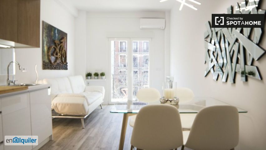 Spotahome presenta con orgullo un apartamento de 1 dormitorio situado en Argüelles, Madrid, ideal para profesionales, estudiantes, estudiantes Erasmus y parejas. Esta propiedad exterior ofrece mobiliario moderno, aire acondicionado individual, calefacción central y una cocina bien equipada con electrodomésticos como lavavajillas y lavadora y secadora. Incluye ropa de cama, tv, aparcamiento y gastos de luz, agua, gas, ibi y wifi. Está revisado por Spotahome y ofrece la máxima comodidad, incluyendo la posibilidad de fumar y permitir mascotas, además de ascensor para mayor accesibilidad. Ubicado en el animado barrio madrileño de Argüelles, este apartamento ofrece fácil acceso a lugares emblemáticos de renombre. Entre las atracciones cercanas se incluyen la emblemática Torre de Madrid, la Plaza de la Guardia Civil, el Paseo de la Fama y el Edificio España. Además, descubra la histórica Fuente del Nacimiento del Agua y la Plaza de las Comendadoras, así como Dulcinea del Toboso y el Monumento a Cervantes. Beneficiándose de su conectividad y proximidad a lugares de interés cultural, este apartamento ofrece una excelente oportunidad para disfrutar de la vibrante ciudad de Madrid.