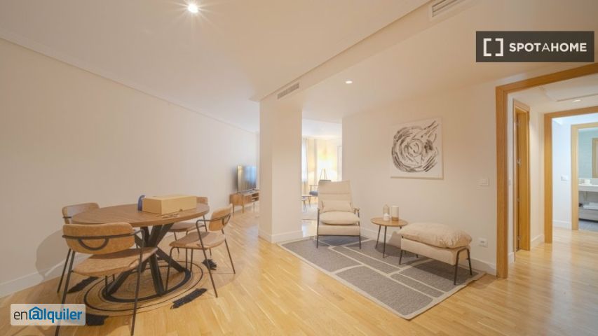 Experimente una vida moderna y amueblada en este encantador apartamento de 2 dormitorios ubicado en Nueva España, Madrid. El apartamento está cuidadosamente diseñado, con aire acondicionado y calefacción central para garantizar comodidad durante todo el año. Está equipado con lavavajillas y horno en la cocina, televisión y wifi, lo que facilita la rutina diaria y el descanso. Se admiten mascotas, sujeto a restricciones. Spotahome ha comprobado personalmente la autenticidad y credibilidad de la propiedad, lo que garantiza una experiencia de alquiler sin complicaciones. Nueva España, Madrid, es conocida por sus excepcionales servicios y atracciones locales. Cerca, puede visitar la Parroquia de San Fernando, un lugar turístico cautivador. Rodeado de varios restaurantes mediterráneos como Nouba y la Malcriada Fleming, la oferta gastronómica es abundante. Otros lugares de interés incluyen la Plaza de Cuzco de Madrid y una amplia selección de restaurantes vibrantes como The Korner y la Taberna el Guapo Bernabéu, todos muy cerca. Disfrute del estilo de vida que ofrece este vibrante barrio.