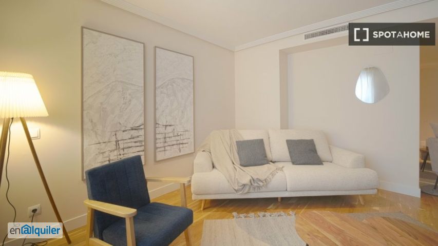 Este apartamento de 2 dormitorios, totalmente amueblado, está disponible para alquilar en Nueva España, Madrid. Equipado con aire acondicionado individual y calefacción central, el apartamento cuenta con comodidades modernas, como una cocina equipada con lavavajillas y horno, y una lavadora compartida. Los gastos de agua, luz, gas y wifi están incluidos, y se admiten mascotas con ciertas restricciones. Verificado por Spotahome, este apartamento garantiza una experiencia de vida cómoda. Nueva España ofrece diversas atracciones en las cercanías, como la Parroquia de San Fernando y la Plaza de Cuzco, Madrid. A poca distancia a pie encontrará restaurantes como Nouba y The Korner, así como lugares como la Taberna el Guapo Bernabéu y Comic Planet para una experiencia culinaria vibrante.